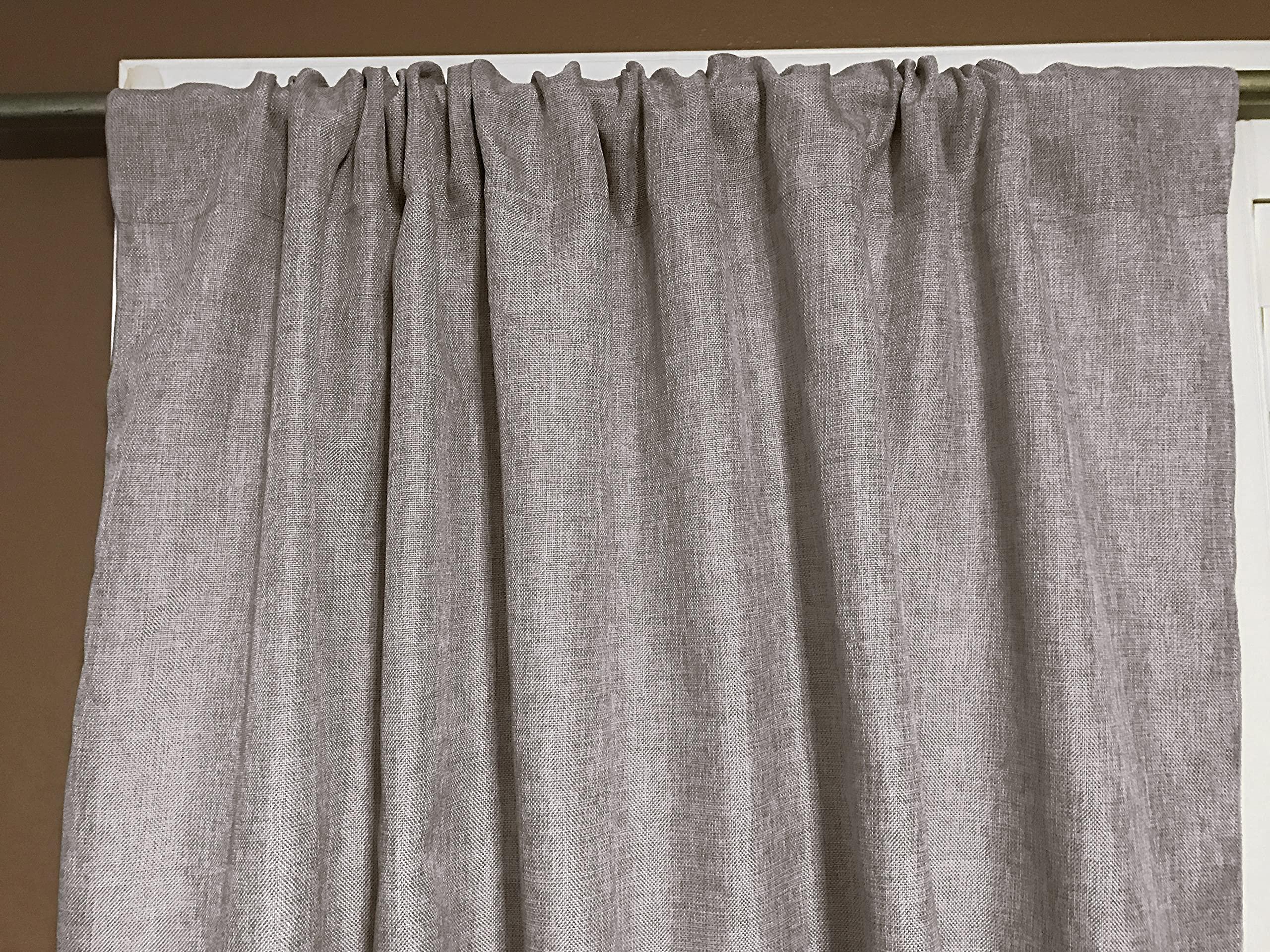 Lovemyfabric faux burlap polyester curtains are a beautiful choice to decorate your window. These drapes also make a perfect choice for backdrops at weddings, trade shows, birthday parties, photo booths, showrooms, theaters, or anywhere you desire to add a touch of class. Unlined curtain allows natural light to flow through. Each panel is 58 inch wide with a 4 inch pocket for curtain rod. Recommended to dry clean or spot clean only.