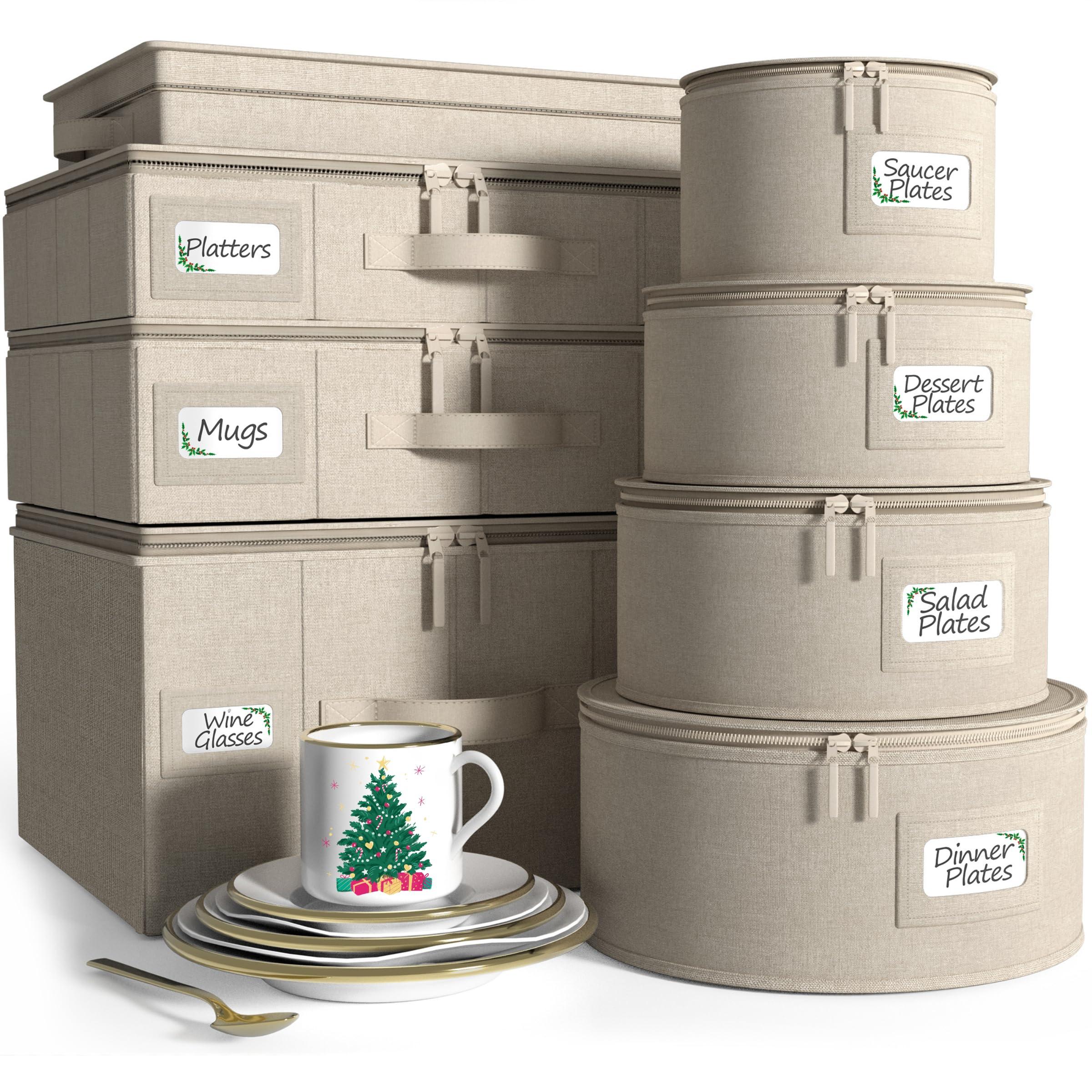 - China Storage Containers Quilted Service for 12: Includes a dinner place organizer, salad plate organizer, dessert plate organizer, saucer plate organizer, mug organizer, platter organizer, utensil organizer, and wine glass organizer - This Sorbus China Storage Set keeps plates and mugs in mint condition and shields dust, dirt, and stains - Serves as moving boxes for dishes and glassware