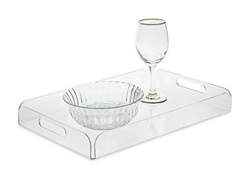 • MULTIPURPOSE. This clear acrylic serving tray is great for everyday use. Grabbing both handles from the side makes serving cocktails, appetizers and breakfast very easy and enjoyable. The clear acrylic compliments the sleek modern design making this serving tray both simple and elegant for celebrations and dinner parties