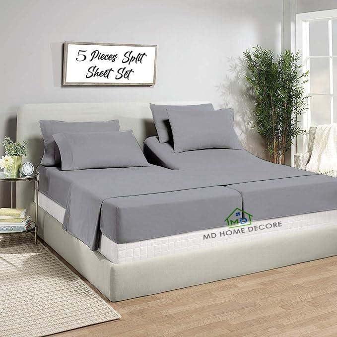 MD Home Decore Specializing in designing, producing, and exporting home textile products for customers in USA, Our aims to providing extra comfort, relax, beauty with our top-quality and affordable home linens. Backed up with OEKO-TEX factories and professional sourcing, developing and designing team. HIGHEST QUALITY 100% Egyptian COTTON SHEETS 100% Egyptian Cotton Sleep into luxury, exceptionally smooth and soft to the touch, the opulent 600-Thread Count cotton sheets sets feature 100% Certified Long Staple Egyptian Cotton allowing you to relax into its cool comfort. Meticulous craftsmanship and expertly woven from the finest extra-long staple cotton yarns to produce super soft luxurious feel which is breathable and long-lasting. Special finishing process to accentuate the luster and softness of the fabric. Features 100% Long Staple Cotton - Single Ply Yarns. Better quality than Egyptian cotton claimed by others. Decorative, high-quality solid fabric Fitted Bottom Sheet with Deep Pocket & Extra Strong Elastic Tight fitting elasticized deep pocket sheet included Light weight, hypoallergenic, and durable sheets Product Details Material: Egyptian Cotton Cleaning Method: Machine Wash 5 Piece Split Sheet Set Includes 2 Fitted Sheet 1 Flat Sheet 2 Pillowcases
