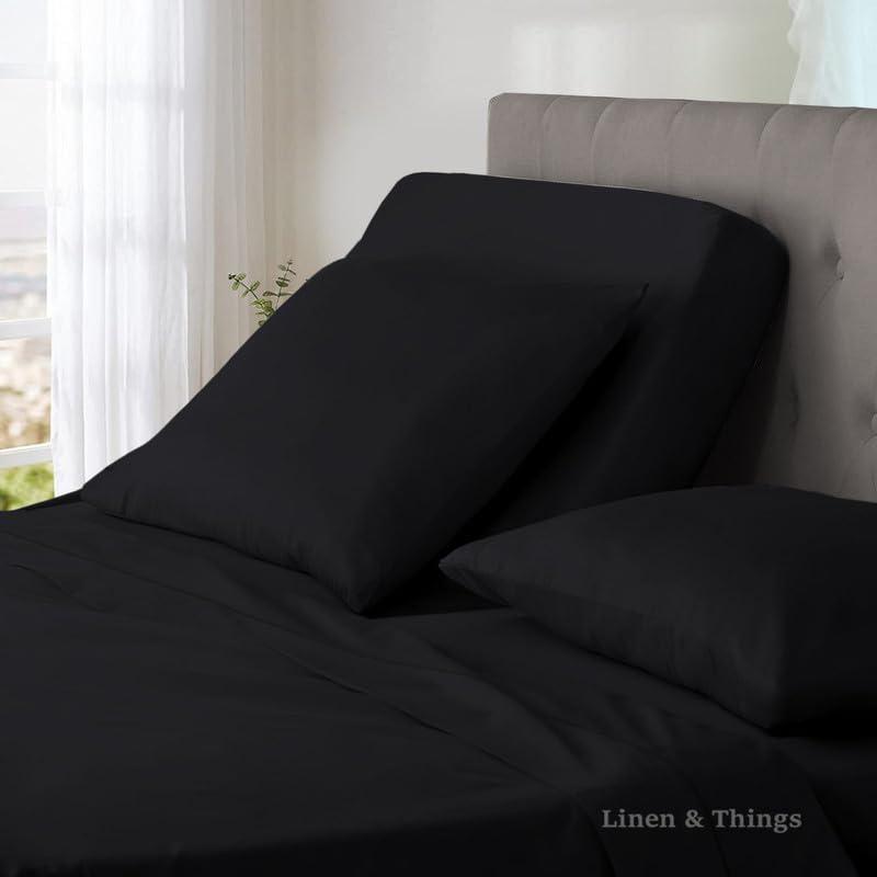 Split Top California King Best Quality Bed Sheet Set with 32" Split From The Split Head - 800TC Split Head Flex Top 15" Deep Pocket (Black Solid, Top Split Cal-King)