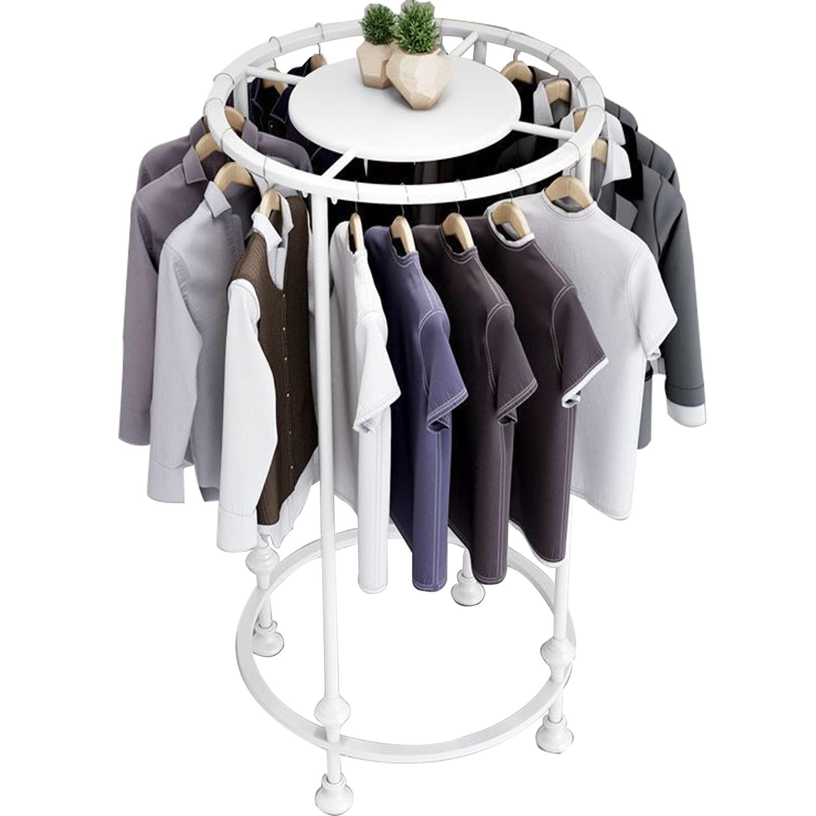 - Extensive UseThis round clothing rack has a unique shape and can rotate 360 degrees freely, which is convenient for daily hanging, storage and access to your various garments, suitable for any large shopping mall, shopping mall, children's clothing store, lingerie store, retail store