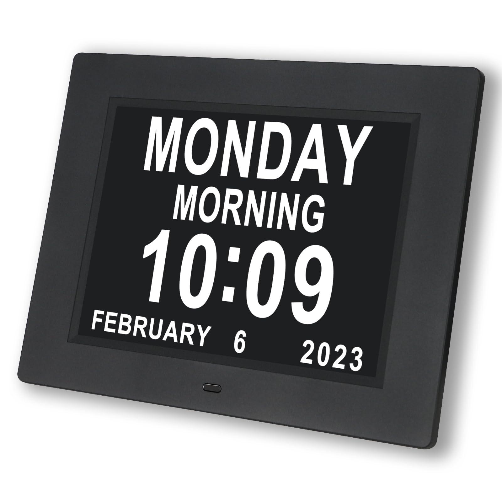 - MULTIPLE ALARM SETTINGS: Digital Calendar Dementia Day Clock 5 alarm modes for easy setting, single or multiple alarms, daily, weekday only, or weekend only. 3 groups of drug reminders : Digital Clock Large Display, Large Number displayMORNING MEDICINE,AFTENOON MEDICINE,EVENING MEDICINEaccurately reminds each medication time period.