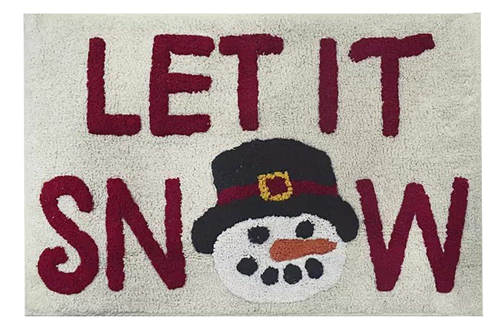 Step onto a cloud of luxurious comfort with this plush bath rug, crafted from a soft and absorbent cotton pile. This generously sized rug measures 20 inches wide by 30 inches long, providing ample coverage for your bathroom floor. The vibrant snowman design with "Let it Snow" wording adds a touch of festive cheer to your bathroom dcor, whether you're decking the halls for Christmas or simply embracing the cozy charm of winter. A non-skid liner is recommended to improve skid resistance and prevent color transfer. Indulge in the plush comfort and festive charm of the St. Nicholas Square Plush Let It Snow Snowman Bath Rug. Order yours today and let the snowmen guide you to a winter wonderland in your own home