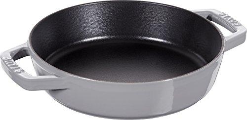 - Cast iron pan with short side handles for frying, roasting, baking and serving