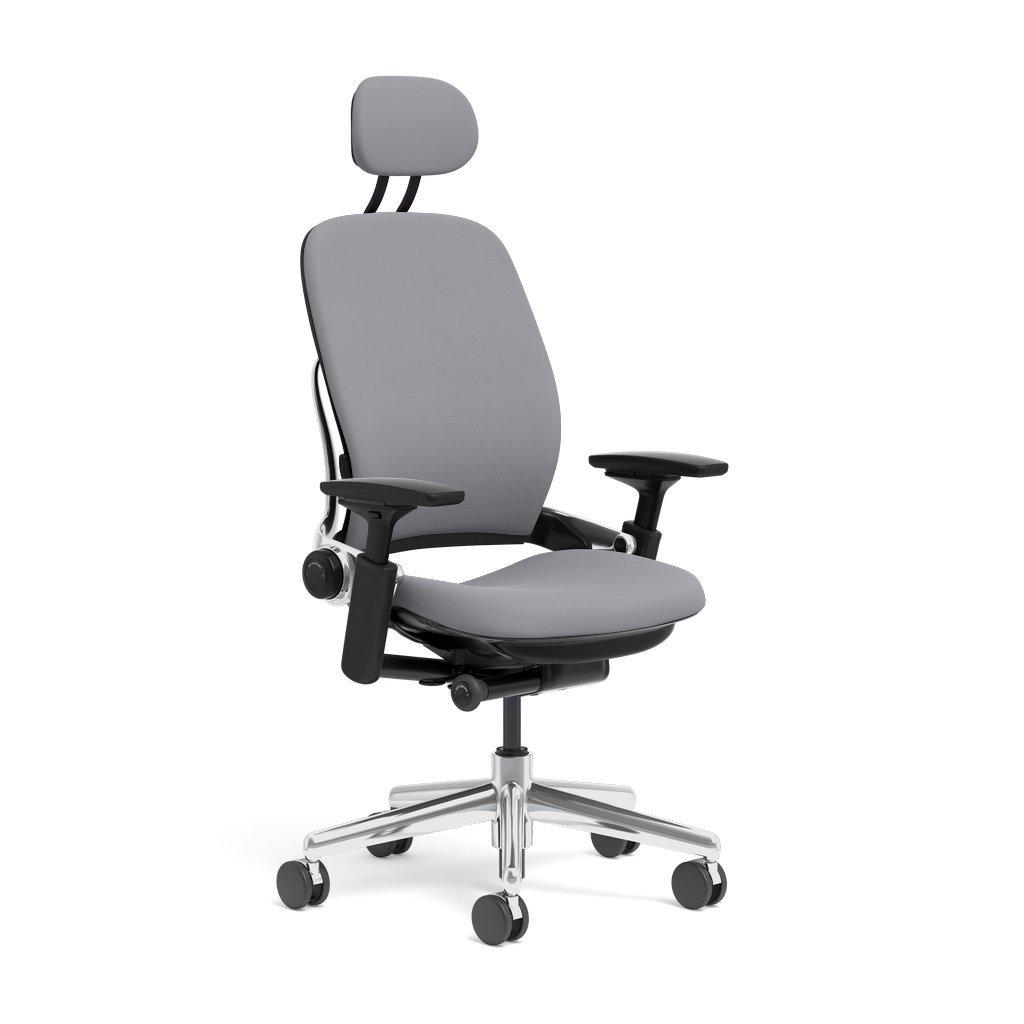 Steelcase Leap Task Chair: Polished Aluminum Base - 4D Adjustable Arms - Headrest - Standard Carpet Casters