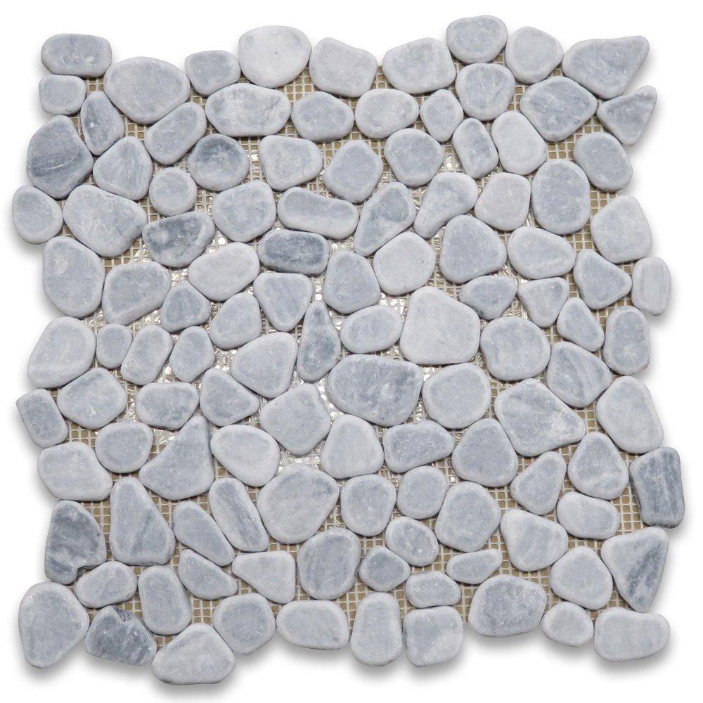- Premium Grade Pebble Stone Bardiglio Gray Marble Mosaic Tile. Italian Gray Bardiglio Marble Tumbled Antique Non Slip Smooth 12 x 12 Random Crazy Mix Wall and Floor Tiles are perfect for any residential / commercial projects. The Dark Grey Marble Bardiglio Carrara Marble Pebble Stone Tile can be used for bathroom flooring, shower surround, kitchen backsplash, corridor, spa, etc.