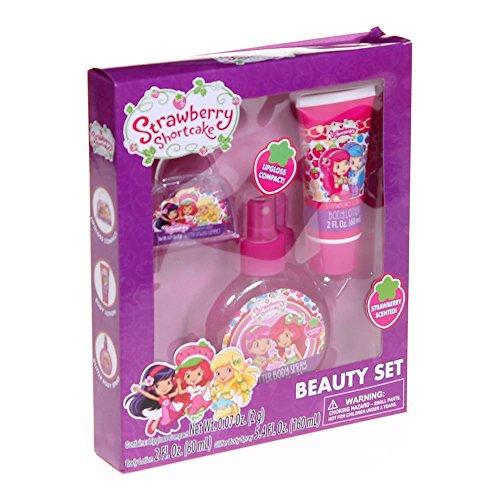 Strawberry Glitter Body Spray 5.6 fl oz. Strawberry Body Lotion 2.0 fl oz. Strawberry Lip Gloss Compact 0.07 oz.