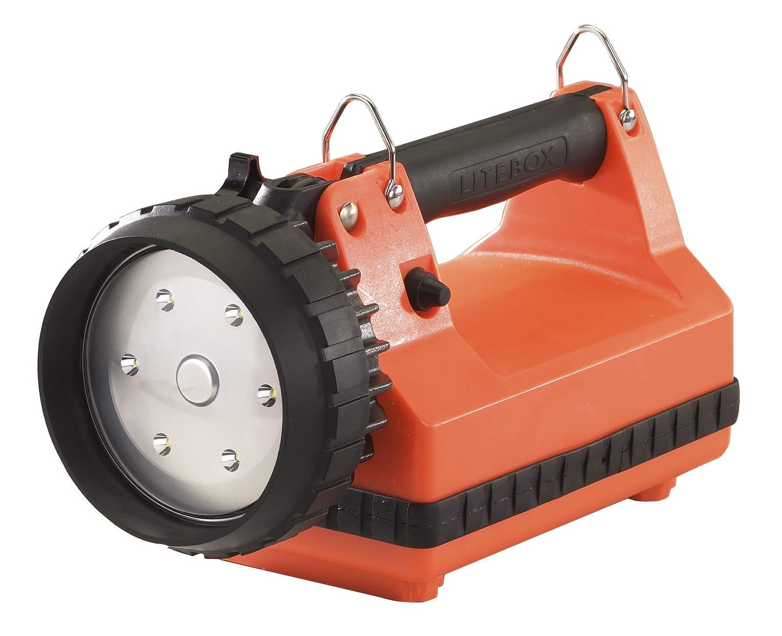 Illuminate the darkest environments with Streamlights E-Flood LiteBox, a rugged, rechargeable lantern designed for peak performance. With 1,500 lumens, 4700 candelas, a beam reaching 137 meters, and a run time of 7.5 hours on high, this lantern ensures excellent visibility. In a smooth flood pattern. Constructed from high-impact ABS thermoplastic, the E-Spot LiteBox is durable and features a comfortable grip. The swivel neck allows you to aim the beam precisely where needed. Choose the low mode for an impressive 17.75 hours of runtime, while the multi-function push-button switch includes a battery life indicator. Weather-resistant with an IPX4 rating, the E-Flood LiteBox stands up to rain and splashes. The power failure system features an integrated power failure circuitry that automatically illuminates the light when the power goes out making this E-Flood LiteBox ideal for emergency lighting in an office, warehouse, or home. It has a shoulder strap, AC and DC charge cords, and a rack. Its also compatible with existing LiteBox mounting racks, making it versatile and easy to integrate into your setup. For reliable, high-performance illumination in any condition, the Streamlight E-Flood LiteBox is your go-to solution.
