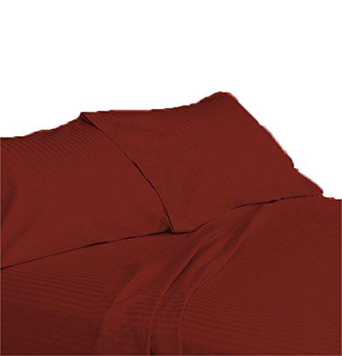 Egyptian Home Linen Stripe 25\" Deep Pocket Sheet Set 4 Piece Set 600TC Egyptian Cotton (Burgundy, Olympic Queen)