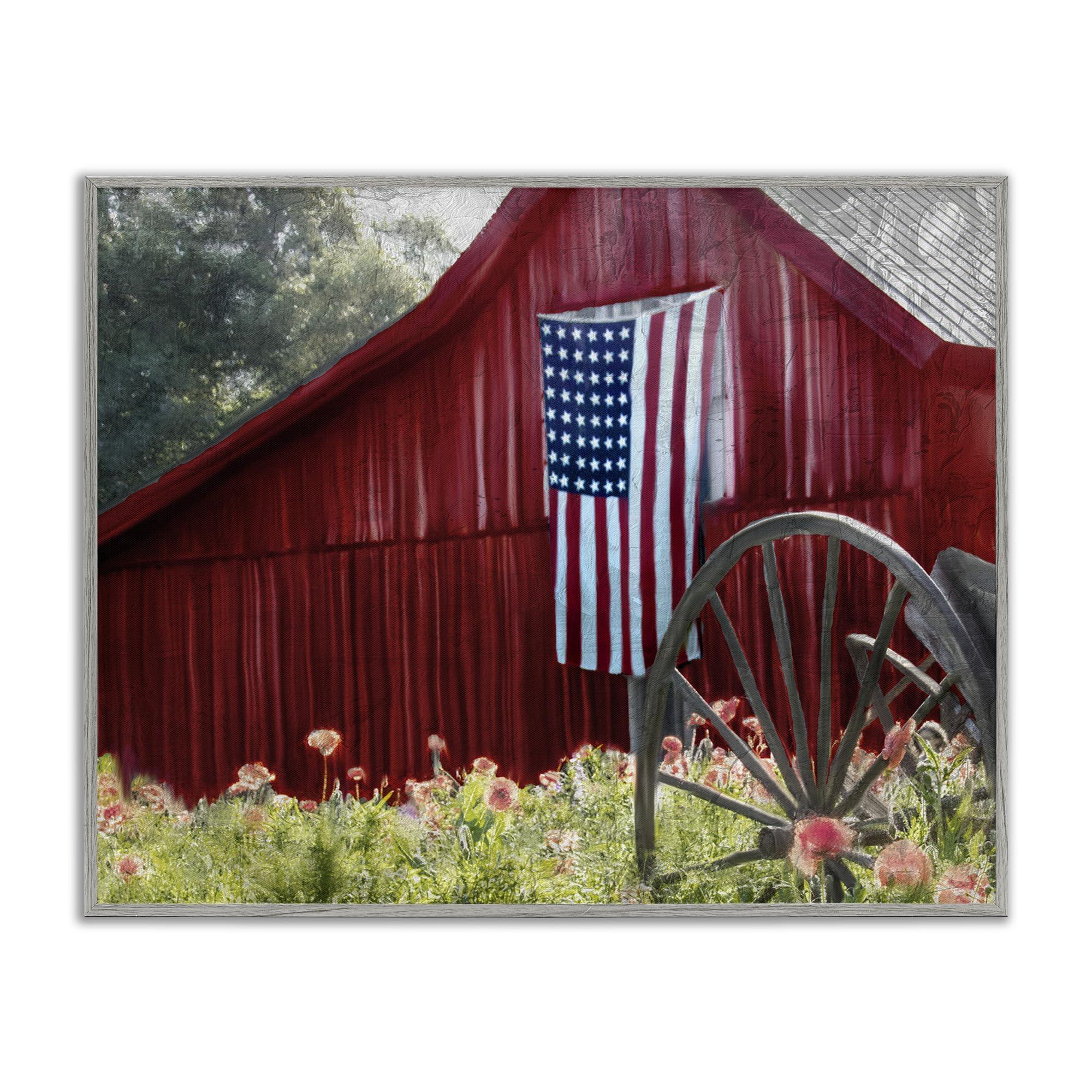 - Artwork Relates To: Nature, Outdoors, Building, Countryside, Barn, Rural, Farm, Wheel, Flag, American Flag, Wagon