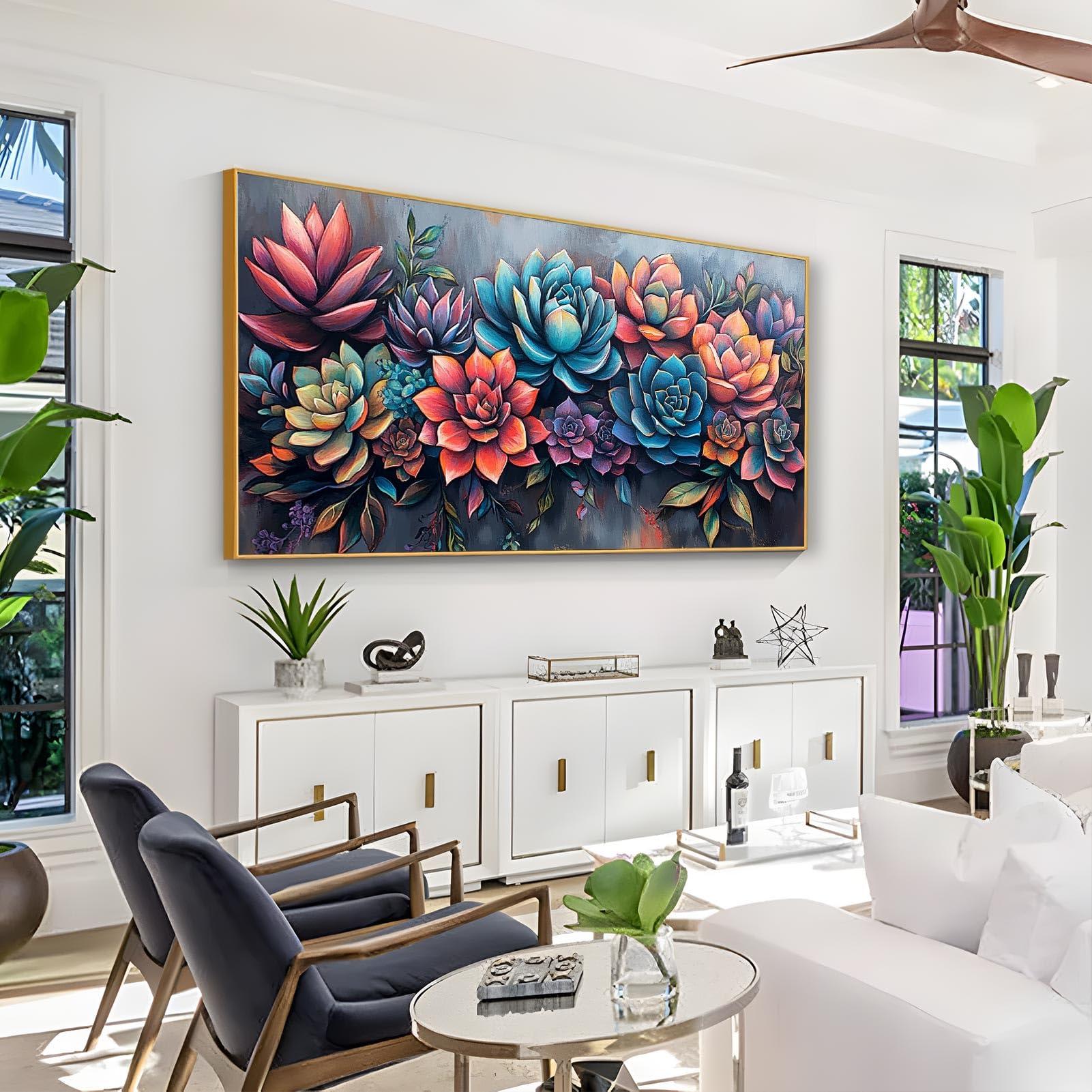 - Canvas Wall Art: Create a serene and calming atmosphere in your home with our botanical wall art. The soothing colorful tones and organic shapes of succulents will bring a sense of tranquility to your space. Imagine coming home after a long day and being greeted by these refreshing and rejuvenating succulent wall