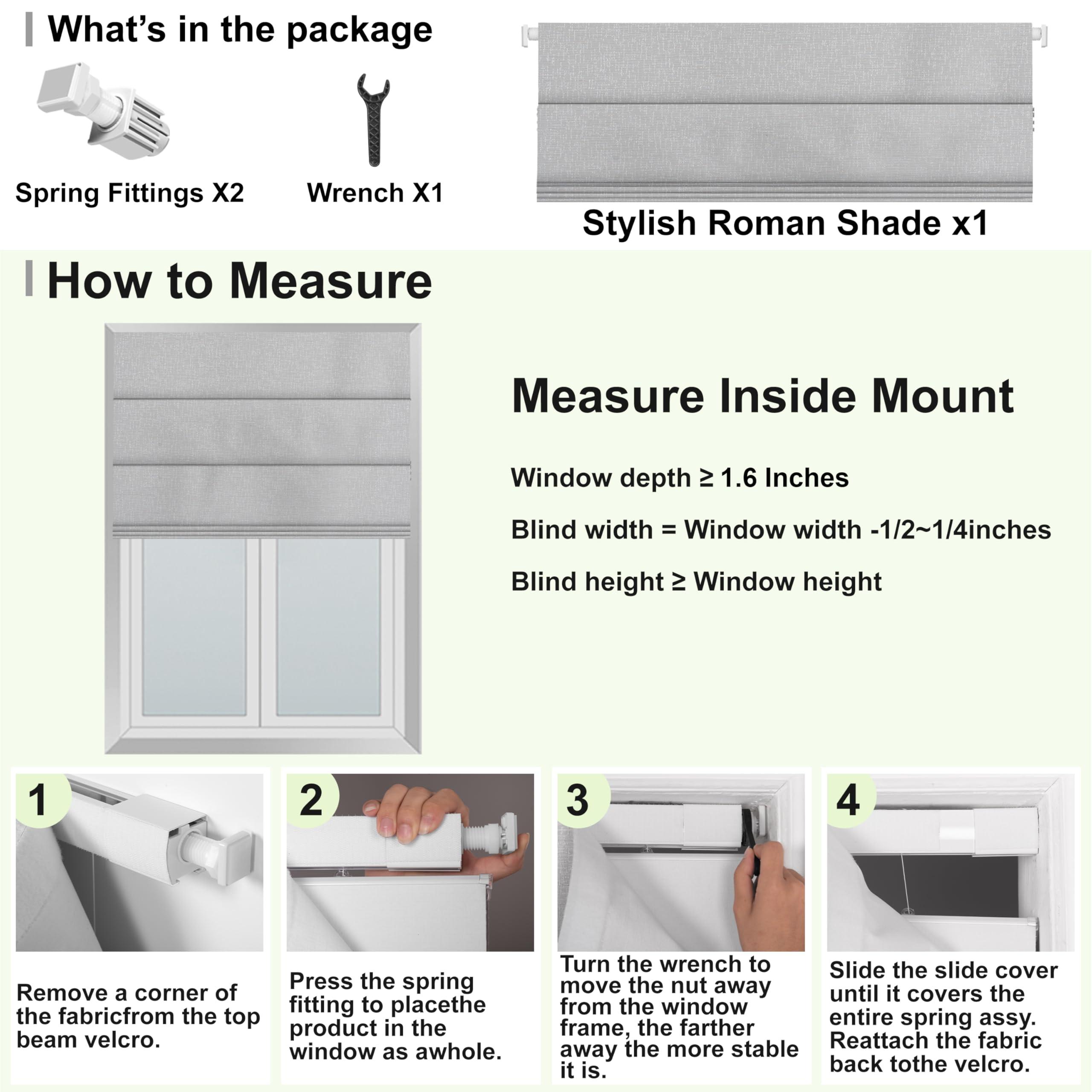 - No drill Roman shades, Cordless systems , Easy to install, no need to damage the wall Easy to install