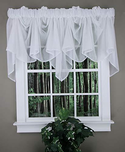 Introducing the Stylemaster's Splendor Batiste valance, a popular style with a unique festoon look that pairs seamlessly with matching panels. This versatile piece can be used as an under treatment or alone for a casual sheer appearance, available in various lengths with a 1 3" pocket and a 2" header for easy installation. Crafted from 100% Polyester, it is machine washable for effortless care, sold individually, and the rod pocket is uniquely placed on the curved/shaped edge for a deep scalloped look. Care is a breeze machine wash cold, use mild soap, non-chlorine bleach when needed, tumble dry low, and warm iron if necessary.
