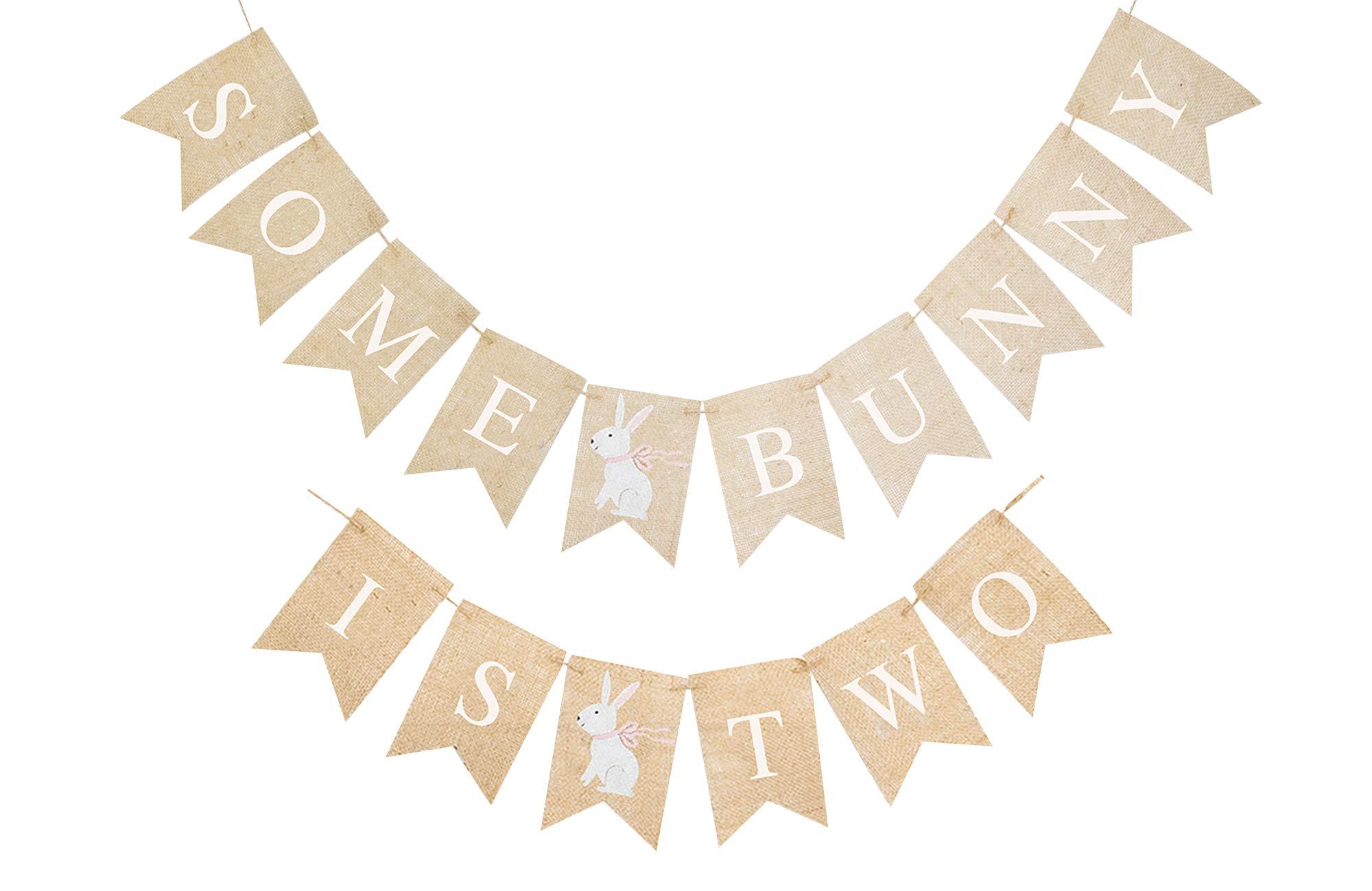 A gorgeous 2nd birthday banner, perfect for your bunny themed party. This bunny garland can be used for a 2nd birthday party decoration. Hang it above a table or use as a photo prop for a bunny 2nd birthday.
