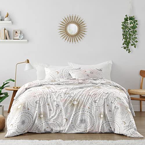 - This set uses an exclusive brushed microfiber stars and moons celestial themed print fabric