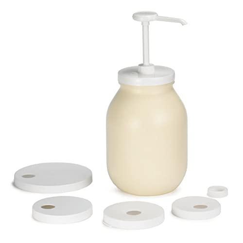 Tablecraft Economy condiment pump kit includes one pump and variety of cap sizes that are made of plastic for added durability.