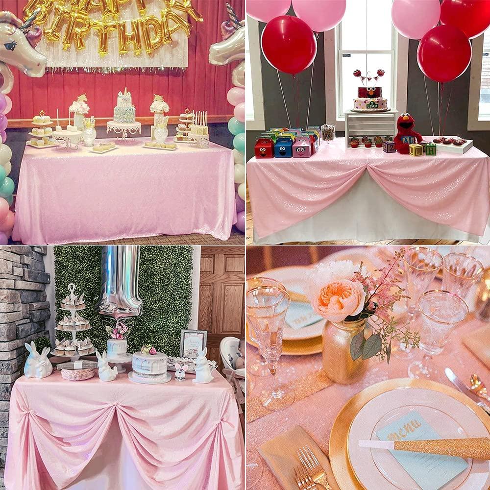 - Sequin TableclothPink tablecloth is 50 x 50 inches / 127 x 127 cm, perfect for parties.