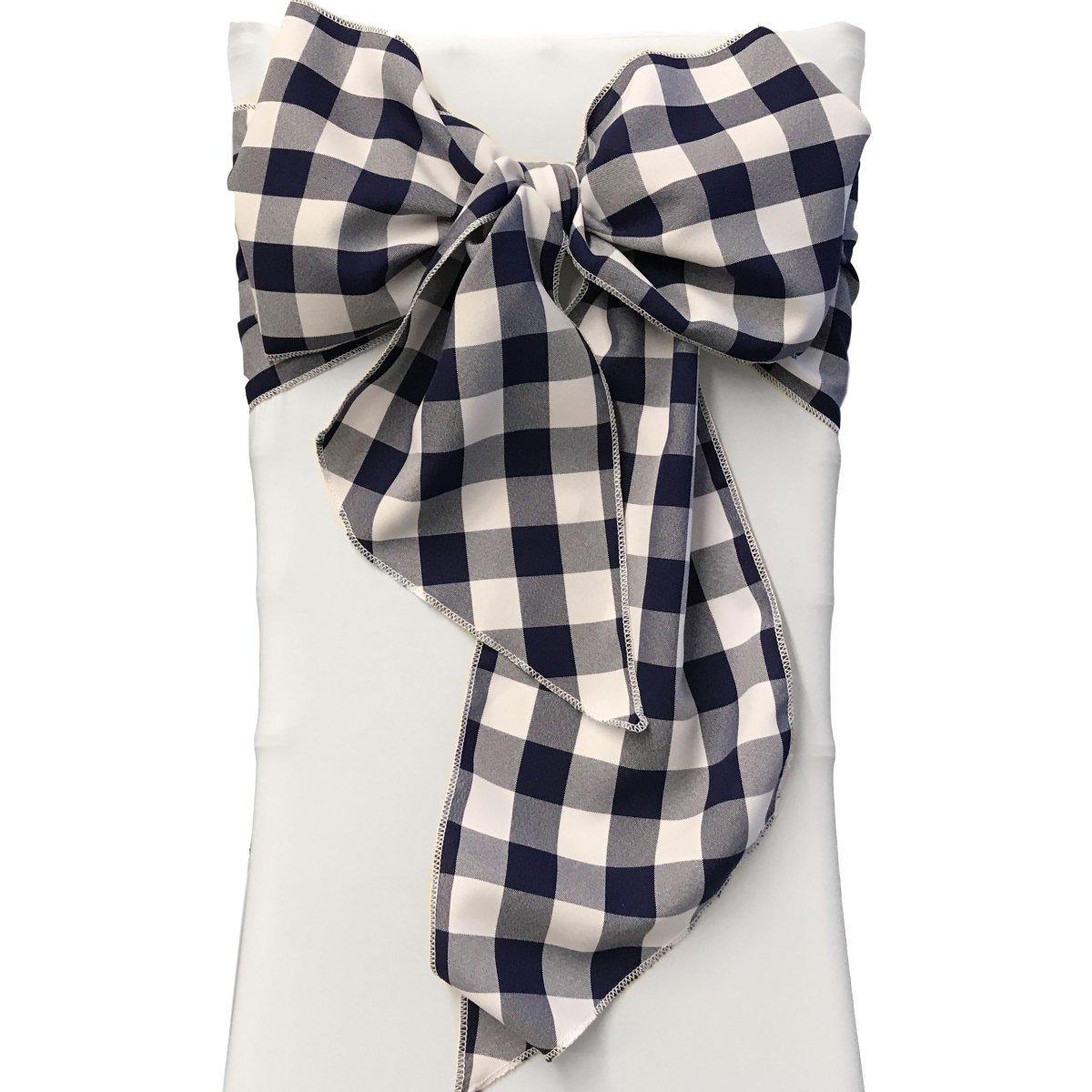 TCcheck8x108-Pk10-NavyK72 Gingham Checkered Chair Bows - White & Navy - 8 x 108 in. - Pack of 10