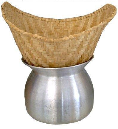 After many years of anticipation, the Wok Shop has finally been able to import this wonderful rice steamer from Thailand. The hand-woven bamboo basket sits in the aluminum rice pot to create perfect aromatic Thai jasmine sticky (sweet) rice. No other steaming method creates sticky rice like this authentic set. Pot 10" dia., 8.5" ht. Basket 10" ht. x 10" x 14.5."