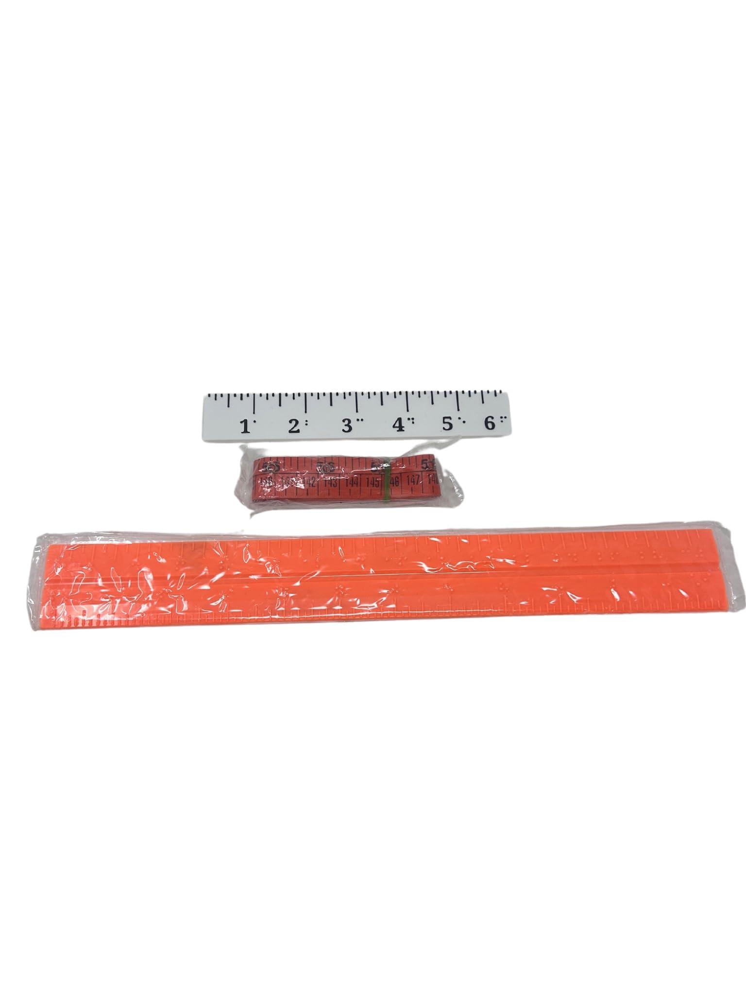 This product includes all of the following items-Classic Braille Ruler in 16 inch and 12-Inch Ruler with Markings Every 1/8 Inch, and our new and improved measuring Tape. Our new measuring tape is a 5-foot Nylon tape with single metal eyelets at 1-inch increments, and double eyelets every foot, making it easy to get an accurate measurement each and every time. The eyelets (or buttons) are easily felt and counted by touch, making measuring distances longer than 12 inches easy and practical.