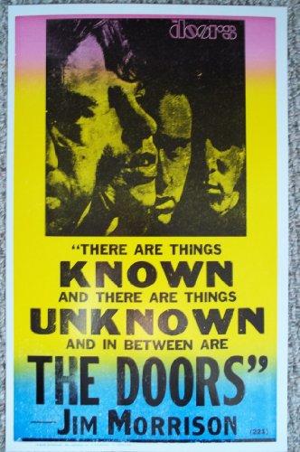 This is a poster of The Doors. On the poster it has a picture of The Doors, and it says "There are things known and there are things unknown, and in-between are "The Doors."-Jim Morrison Great as a gift or perfect for the home or office.