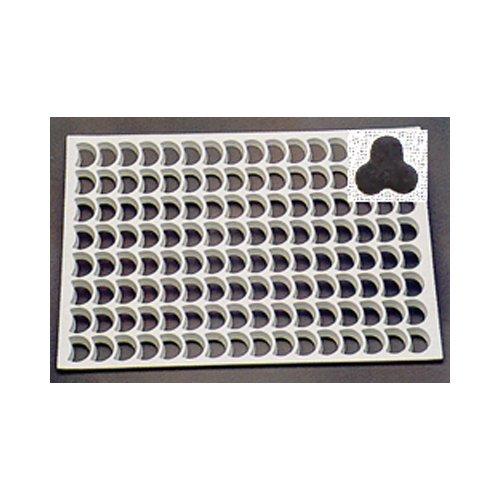 Height of cavities 5/8" overall size of cookie-cutter sheet 15-3/8" x 22-5/8" Great timesaver Produce loads of cookies quickly Put sheeted piece of dough on the inverted cookie-cutting mat. Press dough onto cutting mat with rolling pin Lift cutting mat: the pieces of dough remain beneath in the shape of cookies, ready to bakeFor advice on removing the dough with ease from this sheet after cutting--a challenge with shortbread dough, which tends to be sticky--some expert French chefs who specialize in bread were consulted. They recommend that the dough be very cold when cut. Flour can also help: fill a sheet pan with flour, then press the cutter sheet in the flour, shake off the excess, then cut the dough.