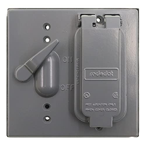 Weatherproof Cover, 2 Gangs, Single Toggle Switch & GFCI/Receptacle/Decorator Device Cover, Surface Mounting, Aluminum, Silver