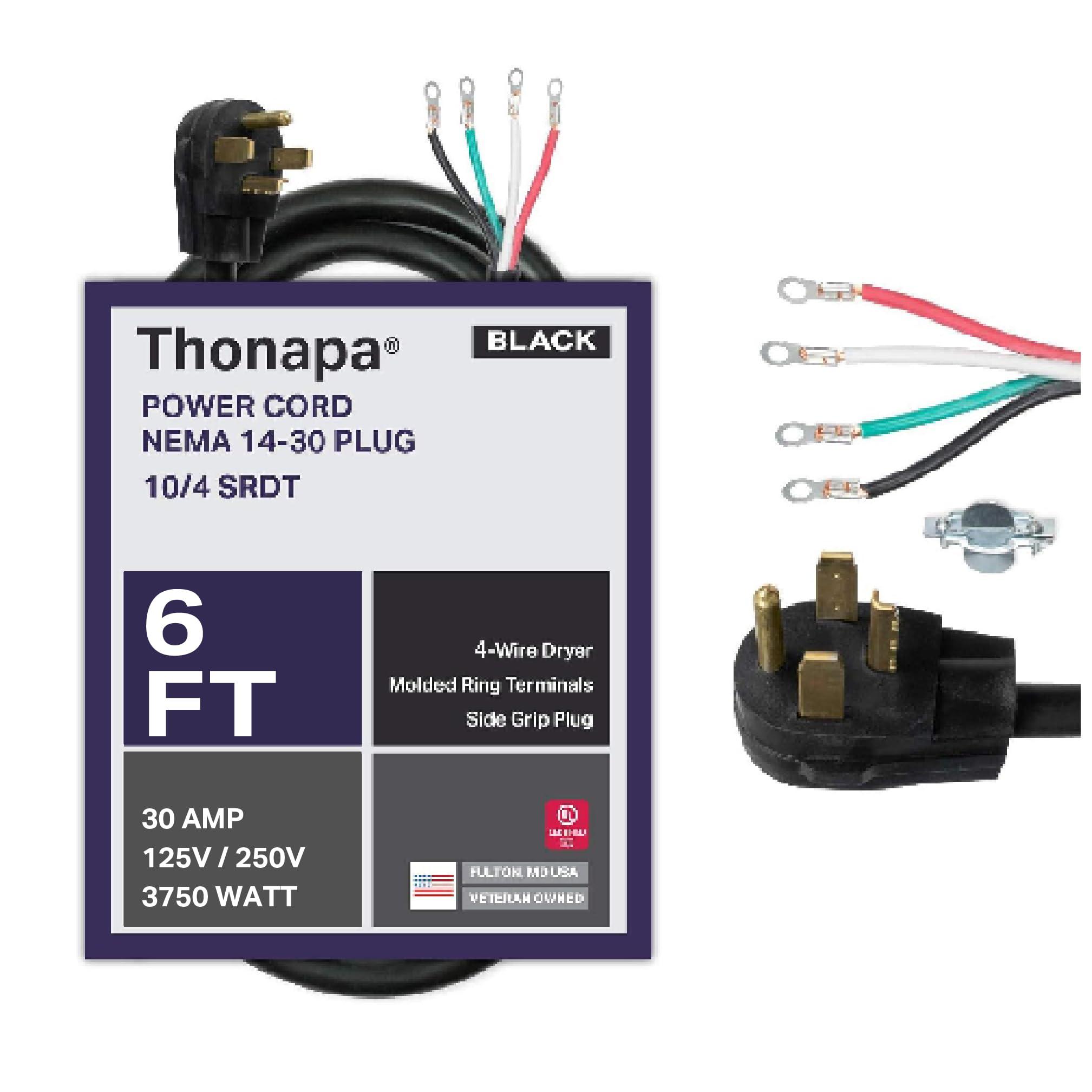 - UL CERTIFIED: SRDT rated, 4 wire dryer cord 4 prong, 10 gauge, 6 foot, 30 amp, 125/250 volt, 3750/7500 watt, NEMA 14-30, SRDT. VETERAN OWNED.