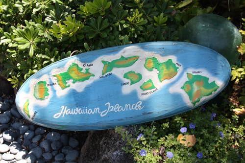 Here is a hand made vintage looking surf sign with the entire Hawaiian islands hand carved and hand painted. Each island is raised (hand carved). This great piece of handycraft measures 32 inches long by 7 inches wide (80cm X 18cm). Great gift idea! Perfect for your home decoration or your outdoor living area!