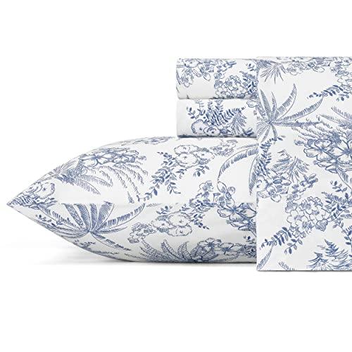 - STYLE, COLOR & FEEL DETAIL: Made with single ply construction, these crisp and cool cotton sheets are ideal for warm sleepers; High quality construction ensures durability, making these sheets perfect for everyday use. The Pen and Ink Sheet Set features a blue floral design on a white ground
