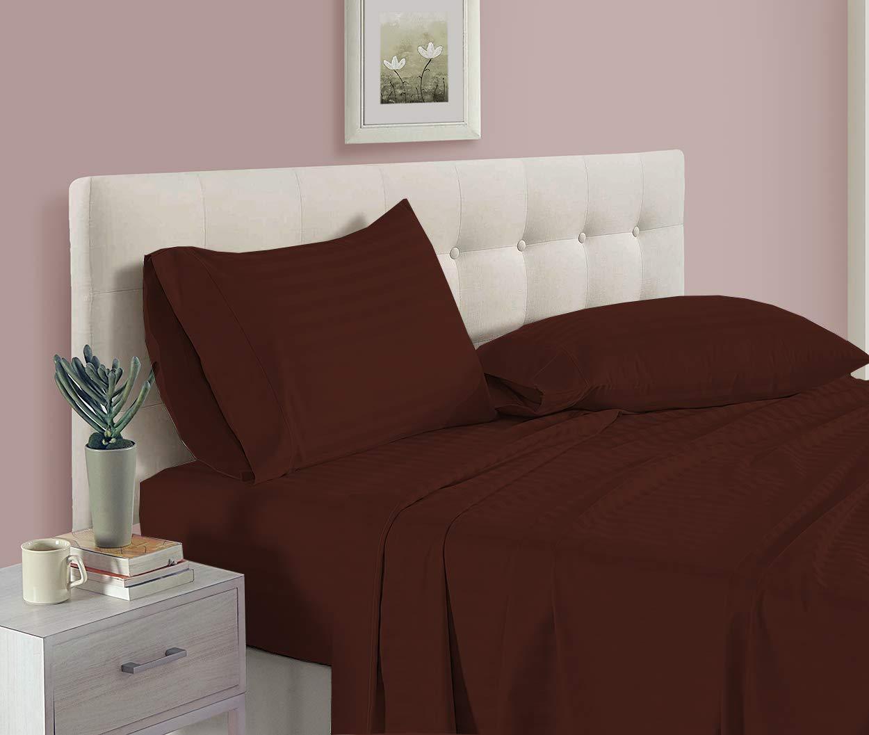 NeemKaroli Top Split Cal King Sheets Sets For Adjustable Bed-Flex Head King Sheets Sets for Adjustable Beds-Half Split Sheets-28 inches Split Top California King Sheets-Cotton Top Split Sheets(Chocolate Stripe)