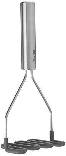 Mash potatoes, avocados, cauliflower, ground meat, and root vegetables with this Silicone Potato Masher from Tovolo. Silicone doesnt scratch metal bowls, cast iron cookware, nonstick bakeware, and additional dishes, so you can use your favorite dishes without worry. The curved wire design mashes your food to your desired texture without over-processing it, so you can leave a few lumps in your mashed potatoes or create chunky guacamole. : BPA-free silicone is scratch-resistant, stain-resistant, and food-safe for the best possible kitchen tool. The soft-touch silicone will not scratch pans, making it a gentle and safe choice for nonstick and cast iron cookware. Silicone is heat resistant up to 600 degrees Fahrenheit. Stainless steel adds style and function to your kitchen utensils. The metal handle is durable and visually striking. The ergonomically shaped handle allows for a comfortable grip, making this kitchen tool perfect for mixing, folding, serving, spreading, scraping, and flipping. Mash potatoes, avocados, carrots, cauliflower, pumpkin, butternut squash, sweet potatoes, and other vegetables; alternatively, use the masher to mix ground meat with herbs, spices, and more. This tool will help you make applesauce, guacamole, baby food, and so much more. BPA-free, dishwasher-safe, and food-safe. Head is heat-resistant up to 600 degrees Fahrenheit; made with silicone and stainless steel.