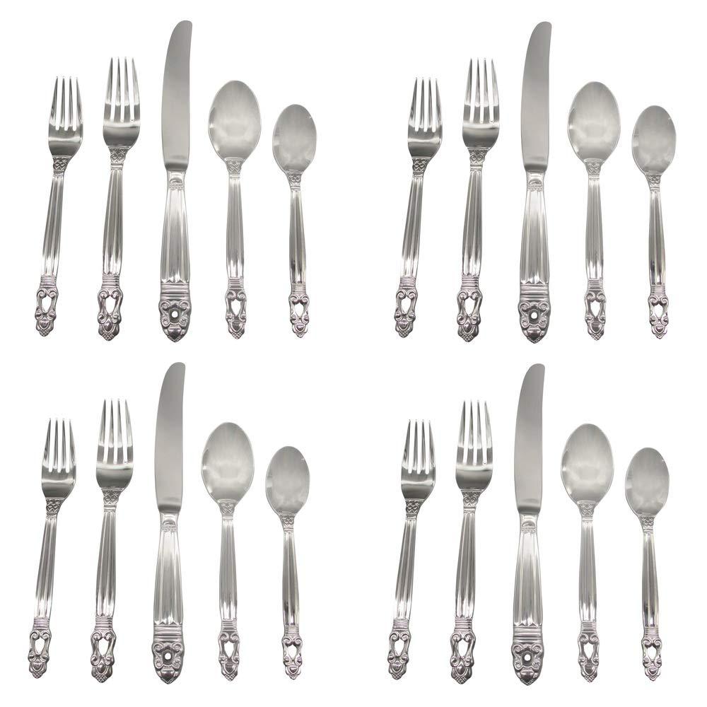 - Included is: Four Dinner Knives, Four Dinner Forks, Four Salad Forks, Four Place Spoons, Four Teaspoons.