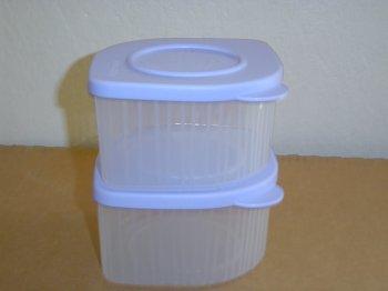 Multipurpose containers for storing and serving all sorts of refrigerated foods. Large tabs makes seals easy to remove. Unique, sculpted shapes fit comfortably in your hand. Textured exteriors provide superior grip. Modular containers stack to maximize space in the fridge.Small set of 2 containers have a 2 cup capacity each.
