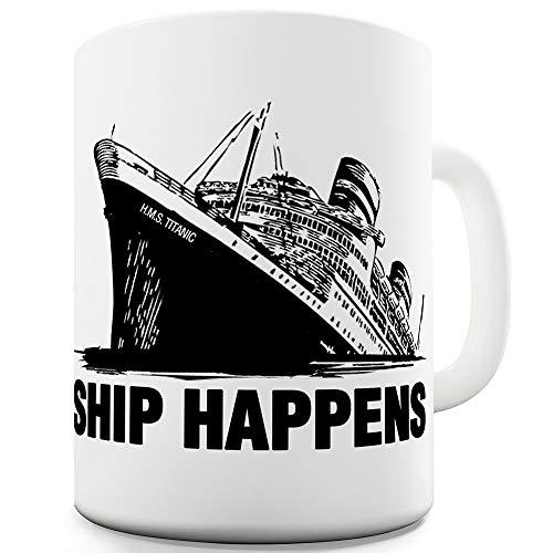 FEATURES: Titanic Ship Happens funny coffee mug Sip hot chocolate on a frosty night A totally unique and hilarious design that will make a great gift Wake up to the smell of freshly-brewed coffee on mugs