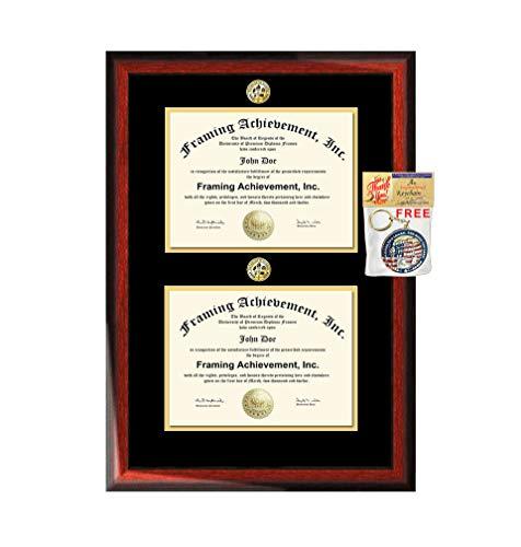 - Dual Certificate Diploma Frame Premium Wood Satin Matte Mahogany with Single Black Matted. Choice of two logos or state seals emblem insignias. Complimentary Motivational Quotes Gold Keychain Gift exclusively by AllGiftFrames Framing Achievement Inc. Frame will be built according to your diploma size.