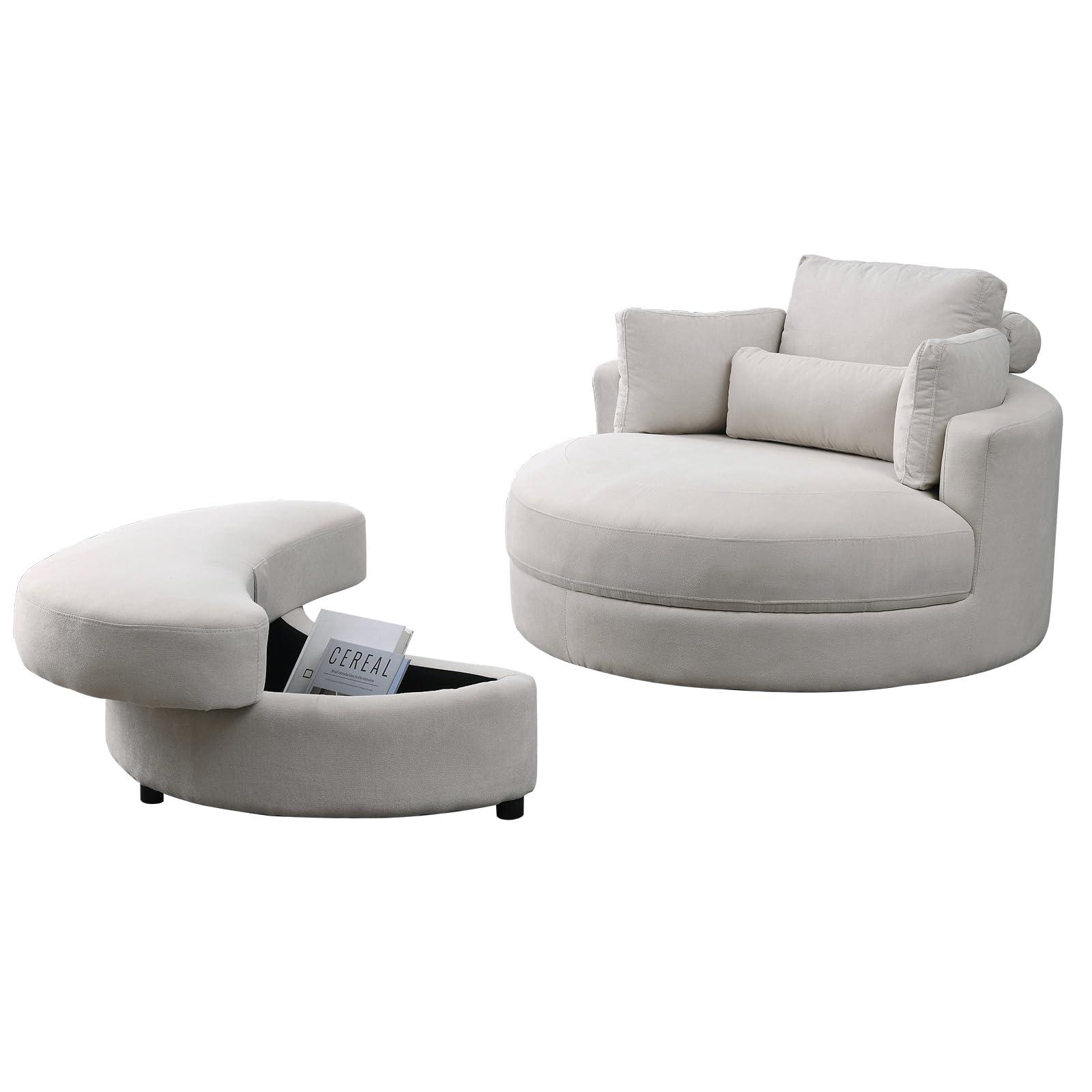 - MULTIPLE COLOR OPTIONS - Choose from a range of sophisticated colors including light grey, dark grey, beige, and ivory to match your personal style and complement your existing decor. With its ability to rotate, you can easily adjust your position for maximum comfort and convenience, our round swivel chair with a half moon ottoman is the perfect investment for your living room or apartment.