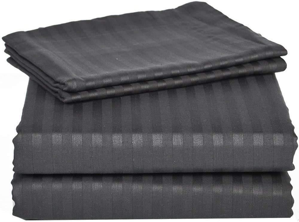 Unique Beddings Unique Beddings Split-King Sheets for Adjustable Bed Ultra-Soft 600-TC Egyptian Cotton 5-Piece Sheets Set Fits 24-26\" Fully Elastic Deep Pocket (Stripe, Grey)