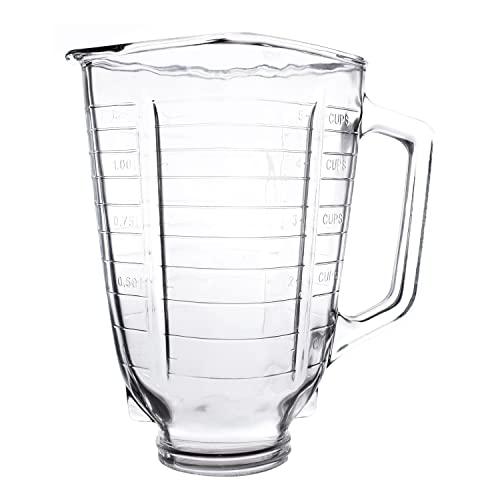 Univen 5 cup, square glass blender jar compatible with Oster and Osterizer blenders. Compatible with Oster blenders, Osterizers and Oster Kitchen Centers models that use a 5 cup jar with a square top. Use with Univen OS-060 lid and Univen OS-055 bottom cap or the original Oster lid and cap. Jar is 8.25" (21cm) tall. The inside diameter of the top of the jar measures 4" x 4" (10.16cm x 10.16cm). Quality part by Univen.