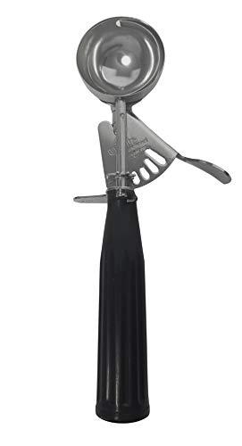 Color Coded Scoop This line of stainless-steel scoops is color coded to aid portion control. Easily scoop and release ice cream, mashed potatoes, and batter thanks to the thumb lever (right handed). These dishers are dishwasher safe and NSF listed.