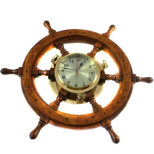 It's time you get the very best - you deserve it! this large imported decorative wooden nautical reproduction antique captain's ship wheel with solid brass porthole wall clock is truly a wonderful work of art! handcrafted to look authentic to the era, this classical, yet stylish wall clock will look absolutely beautiful in your home. It makes a great house warming gift for that special friend that loves the ocean, sea, ships, navy, etc. - or simply a wonderful contemporary home decor piece for your own home.