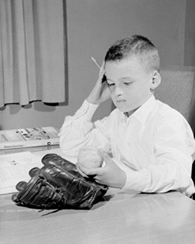 USA Boy with baseball and glove doing homework is a licensed reproduction that was printed on Premium Heavy Stock Paper which captures all of the vivid colors and details of the original. The overall paper size is 18.00 x 24.00 inches. This print is ready for hanging or framing and would make a great addition to your home or office decor.