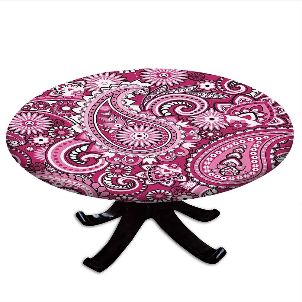 - Perfect Fit - Elastic Edge Design Fits Easily Around ANY Round Table up 62" Diameter.As our fitted table cloths have an inner elastic lining all the way around they dont hang over the edge of the table. So, no more pulling, tugging or tripping or everything being blown over.