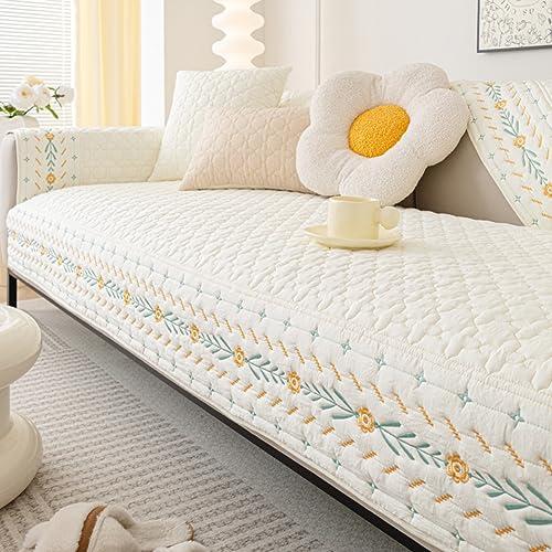 - Stay In Place: Heavy and thick Quilted Sofa Slipcover, stay in place firmly better than other normal ones which use straps. The size of sofa cover usually larger than sofa to tuck the sofa cover in the back and front of the couch more to hold in place.