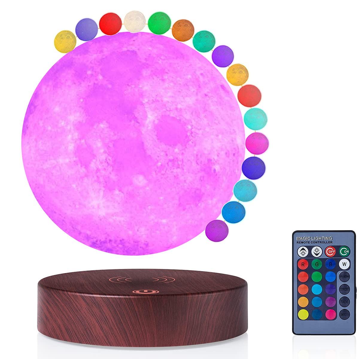 - WIRELESS POWER TRANSMISSION:The moon lamp levitate and light up by simple but fascinating science, the levitation is the result of electromagnetic forces between the base and lamp.The moon is powered through induction.