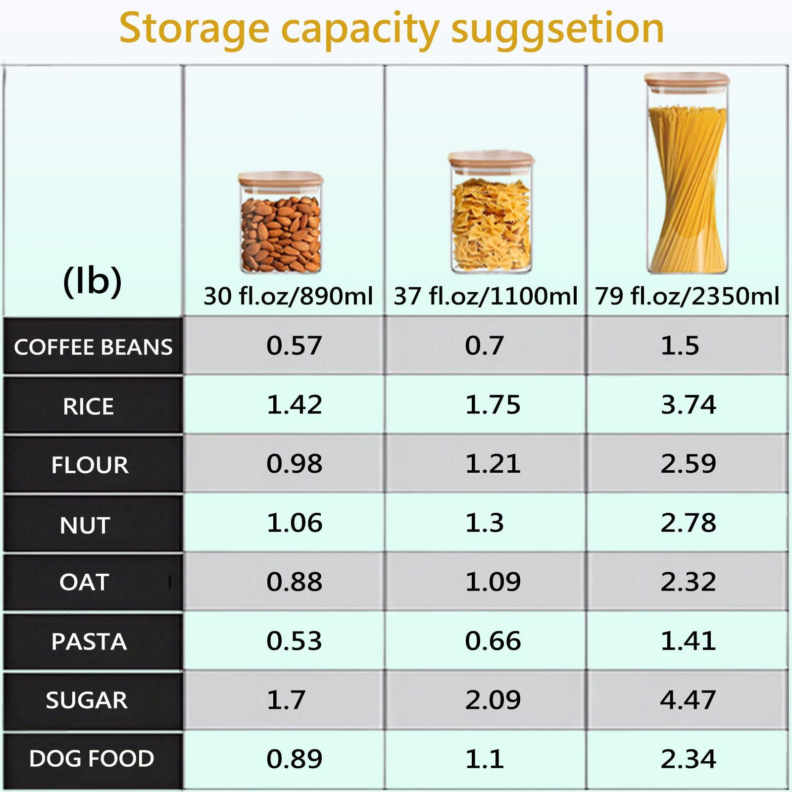 - [Food Storage] perfect to store food like spaghetti/flour/sugar/ beans/ cereal/ grains/ pasta/ nuts/ candies, bathroom and vanity items like cosmetic pads, cotton balls, or other household items. Also can be used as pet food storage container. Before to purchase please refer to the product size and capacity configuration table (very imp ortant)