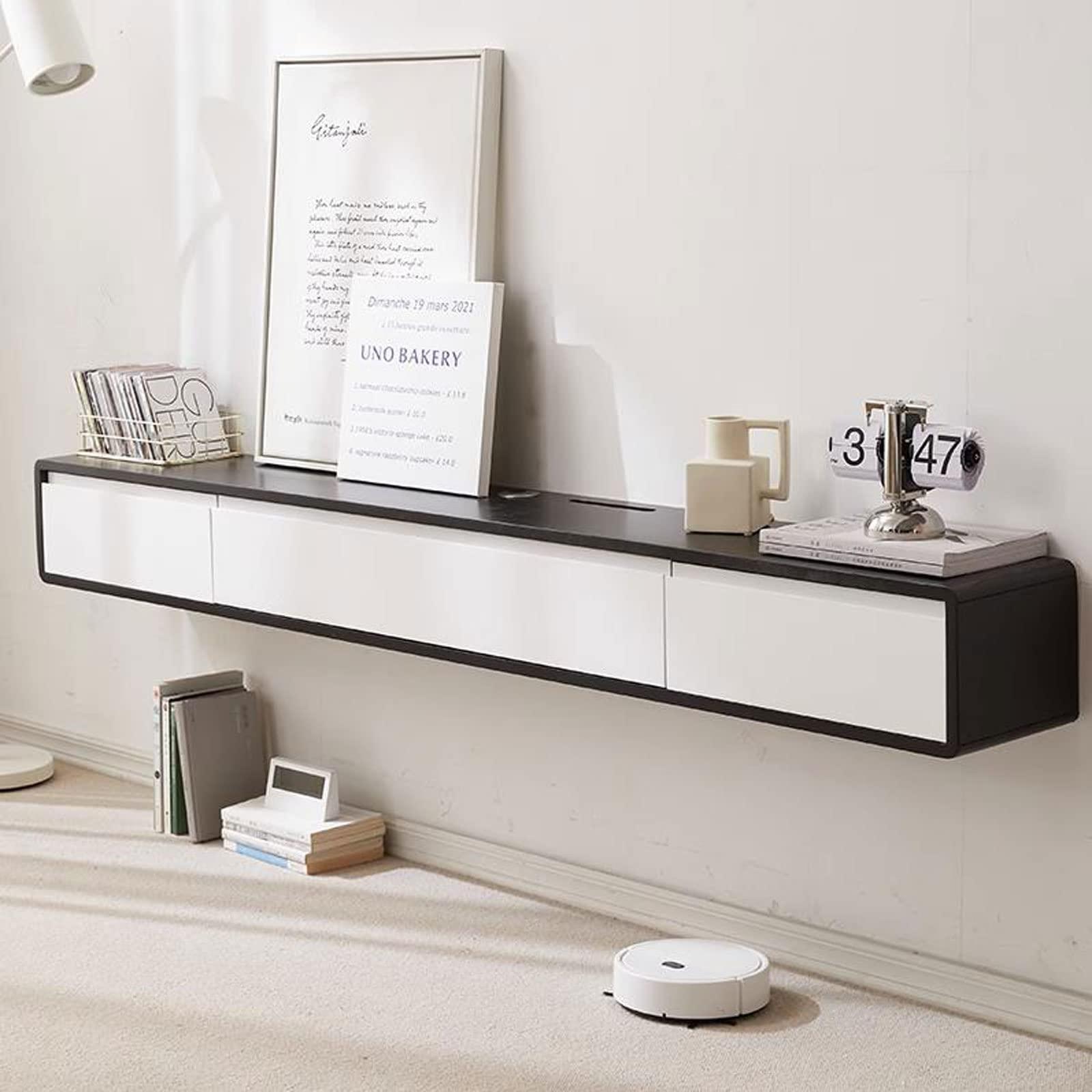 - Space saving & Large Capacity: The floating TV unit help to free up space for cable boxes, set-top boxes, CDs, DVDs, game consoles, projectors, TV components, jewelry, collectibles, photos or small ornaments Spacious storage space. At the same time, it is floating, which also means that you can place your items in the space below, so the TV cabinet will not occupy the position of your floor,it is also convenient for you to clean the garbage on the floor.