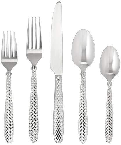 Wallace Reins Flatware Set features an eye-catching herringbone weave design on the handle that will add distinctive style to your table. Crafted of premium 18/10 stainless steel to deliver outstanding beauty and performance. 20 piece flatware set, service for four, includes (4) each: dinner fork, salad fork, dinner knife, dinner spoon and teaspoon. Dishwasher safe.