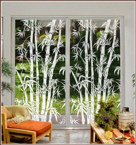 Etched glass design, Big Bamboo, is the perfect complement to rooms with a tropical, beach, casual, Asian or Oriental decor. Decorate sliding glass doors, French doors, storm doors, entry doors and large windows with this beautiful etched glass artwork of a stand of big bamboo. This impressive, life-sized bamboo design decorates without blocking the view. Adhesive-free film saves energy and filters UV rays.